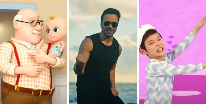 Em segundo lugar, com pouco mais da metade das visualizações do primeiro, está o clipe da música Despacito, de Luis Fonsi. Fechando o top três, está o vídeo ‘Wheels of the Bus’.