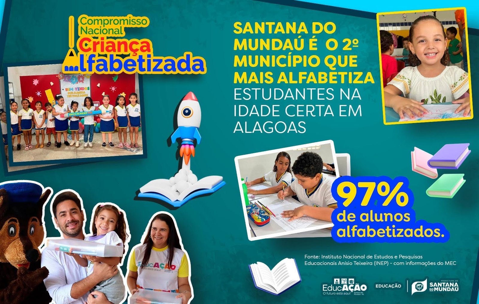 Nos índices de alfabetização, referente aos alunos com até 8 anos, o Ministério da Educação (MEC), divulgou na última semana, que com 97% das crianças alfabetizadas na idade certa em 2024, Santana do Mundaú é o 2º município que mais alfabetiza em Alagoas.