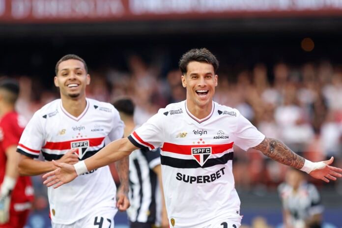 O São Paulo seguia em cima e parecia perto de construir uma goleada quando o Santos “achou” um gol. João Schmidt cruzou, Léo Godoy cabeceou e a bola bateu no braço de Enzo. Pênalti marcado e convertido por Tiquinho Soares. 2 a 1.