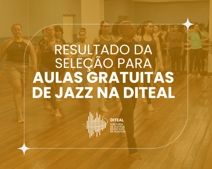 A Diretoria de Teatros do Estado de Alagoas (Diteal) divulgou o resultado da seleção feita nos dias 13 e 18 de setembro para as turmas gratuitas de jazz iniciante, ministradas pelo professor, bailarino e coreógrafo Luiz Carlos dos Santos, na sala de dança do Complexo Cultural Teatro Deodoro.