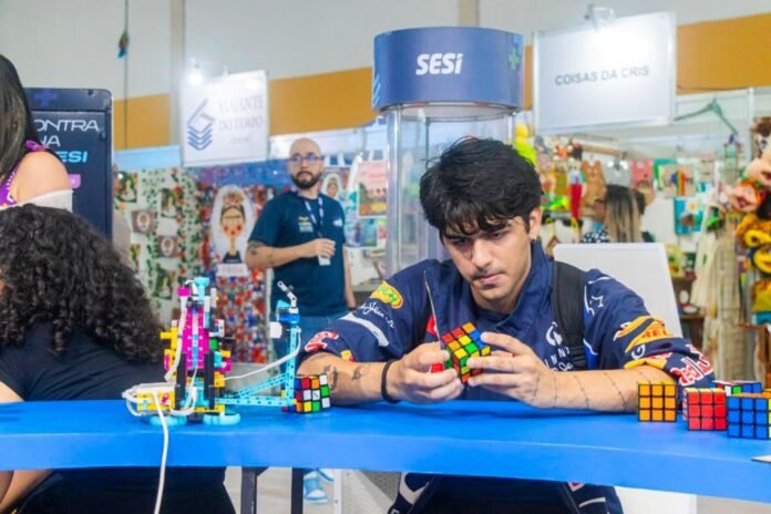 Outra atração é o EJAI Pro, programa que integra a conclusão do ensino fundamental à qualificação profissional. A inovação educacional também ganha destaque com o robô interativo NAO, que representa as soluções de robótica educacional do SESI para escolas públicas, e com o Desafio Tangram – Cubo Mágico, experiência lúdica que demonstra o uso de espaços makers na recomposição das aprendizagens e no desenvolvimento de competências STEAM (Ciência, Tecnologia, Engenharia, Artes e Matemática).