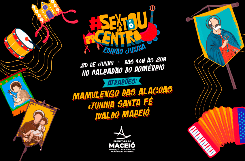 Nesta sexta-feira (20), o Calçadão do Comércio, em Maceió, será palco de mais uma edição especial do Sextou no Centro, que promete animar a tarde da capital com muita cultura e tradição junina. Das 16h às 20h, o público poderá prestigiar shows e apresentações culturais.