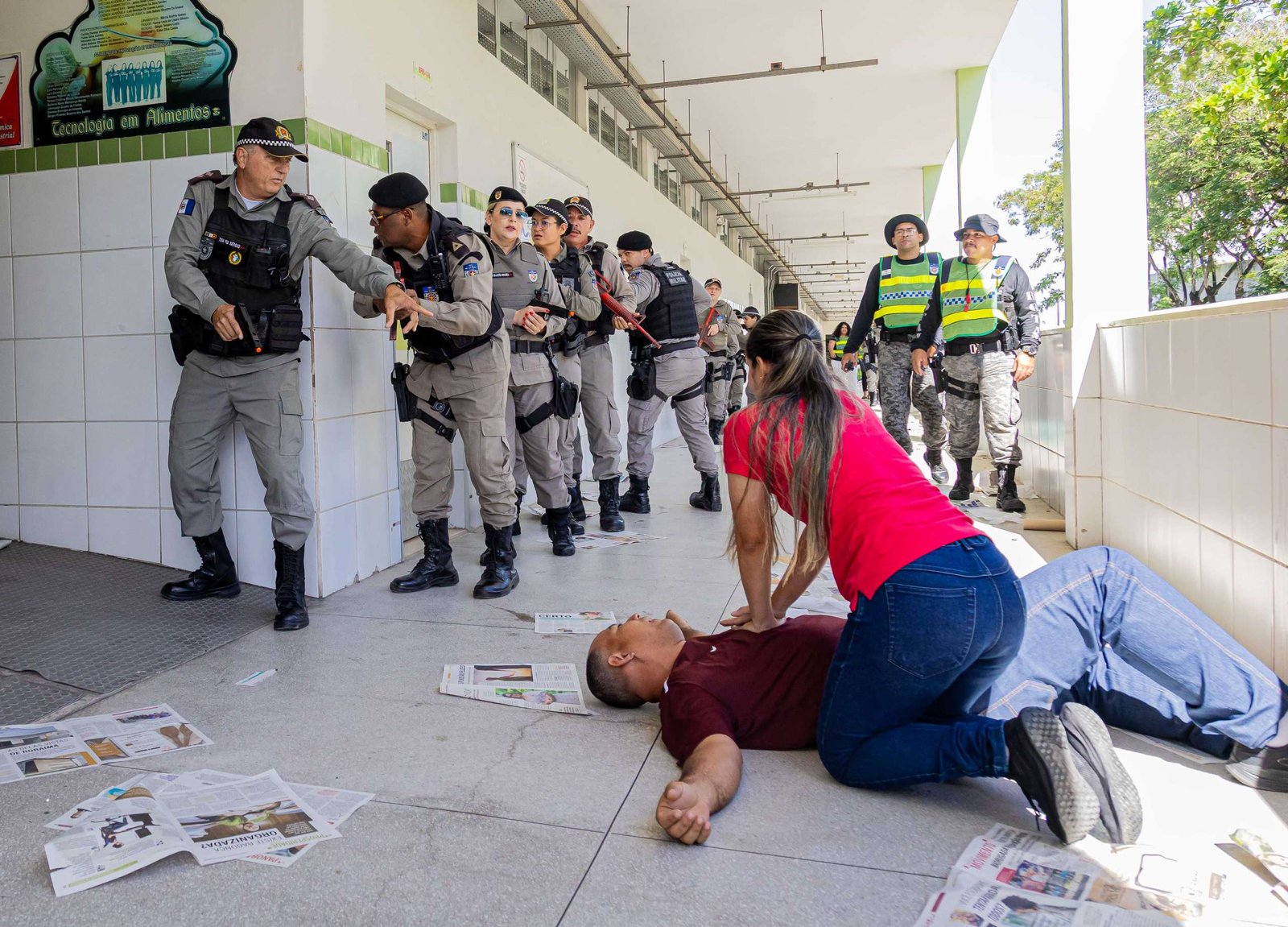 O simulado contou com a colaboração de membros da comunidade escolar, que participaram de forma ativa das cenas de intervenção executadas pelos militares. Para dar veracidade ao cenário de ataque de um agressor ativo, foram utilizadas bombas e armas de airsoft.
