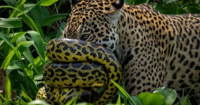 Sucuri enfrenta onça em duelo impressionante no Pantanal | Foto: DOL
