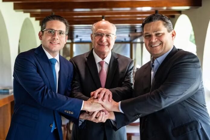 Os presidentes do Senado, Davi Alcolumbre (União Brasil-AP) e da Câmara, Hugo Motta (Republicanos-PB), receberam nesta quarta-feira (16) o vice-presidente Geraldo Alckmin para uma reunião sobre o tarifaço anunciado por Donald Trump contra produtos brasileiros.