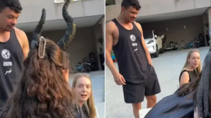 Tata Estaniecki, 31 anos, foi vista com Júlio Cocielo, de 32, dias após o anúncio do fim do casamento. Os dois apareceram em um vídeo feito por convidados de uma festa de Halloween realizada no condomínio onde a influenciadora mora, em Alphaville, São Paulo. Uma das mães, que filmava a filha visitando as casas para pegar doces, mostrou o ex-casal junto com os herdeiros, Beatriz, de 5 anos, e Caio, de 2, no evento.