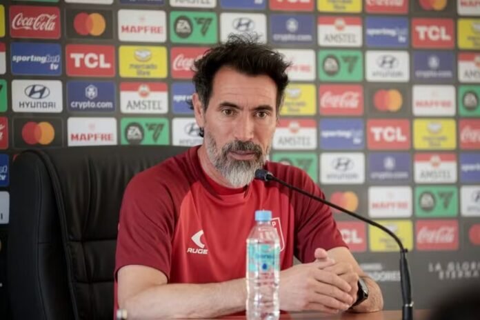 Flamengo e Estudiantes se enfrentam, pela ida das quartas de final da Libertadores, no Maracanã, daqui a três dias, mas o treinador do time argentino já sabe o que fazer. No último domingo, Eduardo Domínguez concedeu uma entrevista coletiva no City Bell Country Club, em Buenos Aires, e projetou o confronto contra a equipe brasileira.