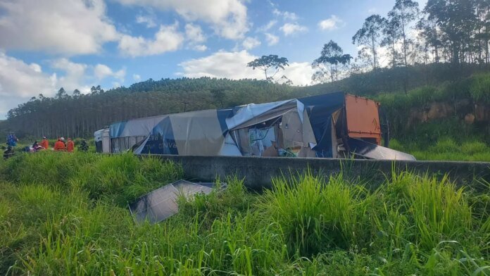 A outra vítima, esposa do condutor, também estava fora carreta. Ela foi socorrida por transporte terrestre para a mesma unidade, com suspeita de trauma na clavícula.
