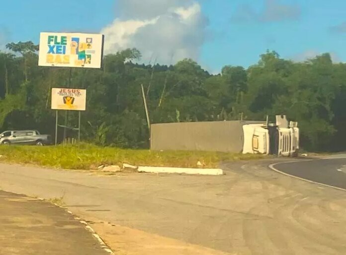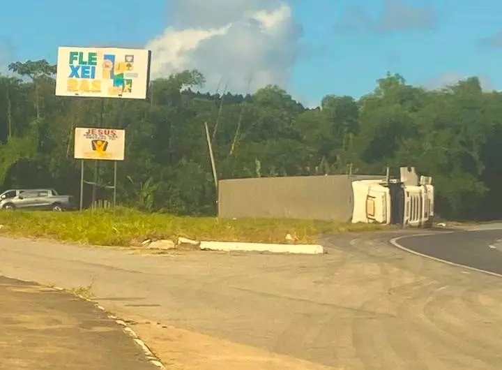Uma carreta tombou, na tarde desta segunda-feira, 28, na altura do Km 51 da BR 101, no trevo de acesso à cidade de Flexeiras, a 59 quilômetros da capital, zona da mata do Estado. De acordo com a Polícia Rodoviária Federal (PRF), não houve registro de feridos, nem prejuízo no tráfego, uma vez que ficou totalmente fora da rodovia.