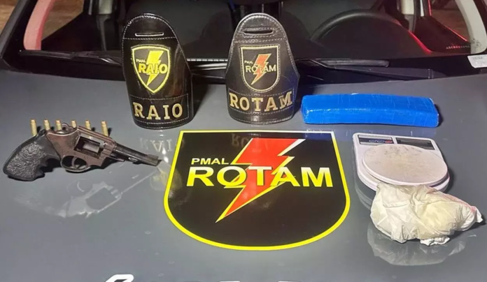 Durante as buscas no local, a polícia encontradou um revólver calibre 38 com seis munições intactas. Questionados sobre o forte odor de maconha, os suspeitos admitiram ter drogas dentro da residência. No imóvel os policiais apreenderam, 730 gramas de maconha, 280g de cocaína e uma balança de precisão.