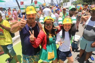 Os turistas Liender Claus e Cintia colocaram seus adereços e foram para a avenida. O casal é natural do Belém, no Pará, e está no bloco pela primeira vez. “Lindo. Nós estamos apaixonados. Nós vamos dançar muito”, afirmou Cintia.
