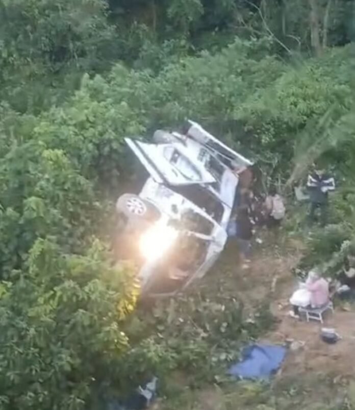 Em imagens recebidas pela equipe da TV Rio Sul, é possível ver a van tombada na ribanceira com as vítimas próximas ao veículo.