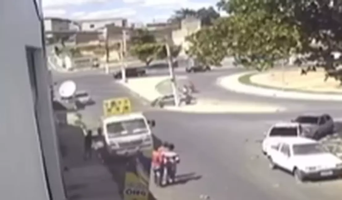 Imagens captadas por câmeras de videomonitoramento instaladas nas redondezas registraram o momento da colisão. O impacto foi forte o suficiente para atrair a atenção de pessoas que passavam pelo local.