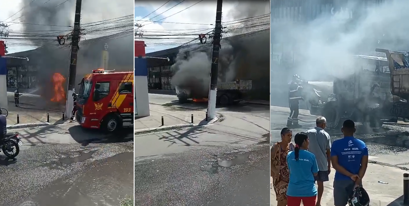 Um caminhão caçamba incendiou nas proximidades de uma empresa de telemarketing, no conjunto Salvador Lyra. Apesar da intensidade das chamas, não houve registro de vítimas.