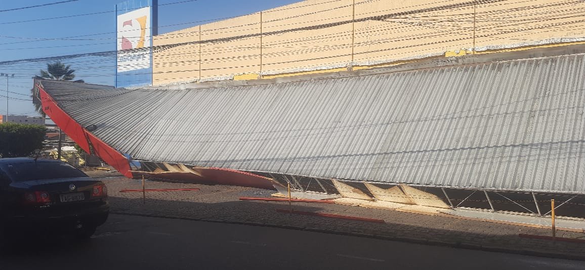 Imagens feitas no local mostram que a estrutura caiu sobre a área externa do estabelecimento. Equipes de segurança e responsáveis pelo supermercado já estão no local realizando uma avaliação dos prejuízos e tomando medidas preventivas para evitar novos riscos.