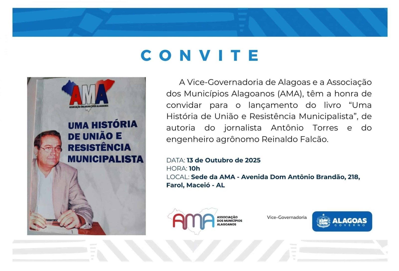 A AMA, que sedia o lançamento, reforça seu papel como espaço de memória e articulação política dos municípios. O evento conta ainda com apoio cultural da Vice-Governadoria de Alagoas, em reconhecimento ao valor histórico do movimento municipalista e à importância de preservar registros que ajudaram a moldar a gestão pública contemporânea do Estado.