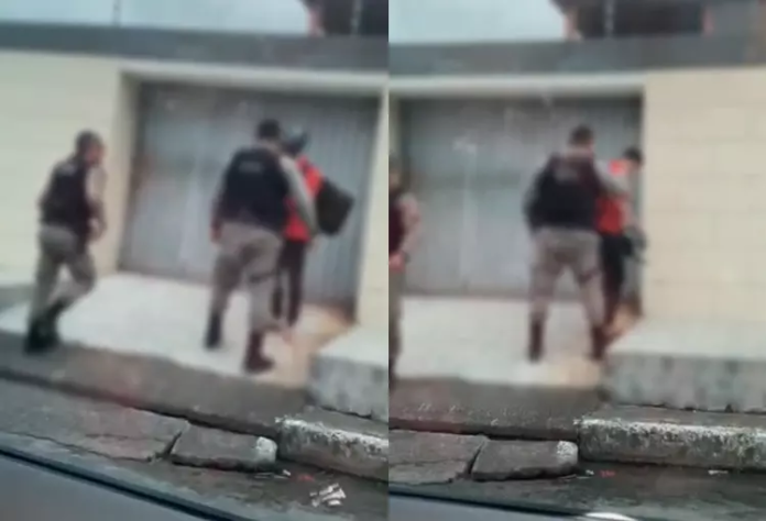 A gravação mostra dois policiais abordando um motoboy. Um deles chega a segurar a arma enquanto o outro se aproxima intimidando o entregador, que retira o capacete e tenta conversar com os agentes. Em seguida, o policial se afasta, enquanto o segundo militar desfere um tapa no rosto do homem.