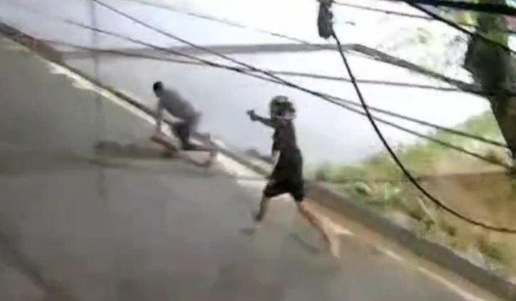 O vídeo, que é de um circuito de segurança, capta a vítima andando pela rua, usando uma camisa cinza e bermuda jeans, quando se encontra com o suspeito, que usava um capacete de moto e camisa e bermuda pretas. Pouco antes de ser morto, o homem pergunta, gritando, “vai me matar, é?”.