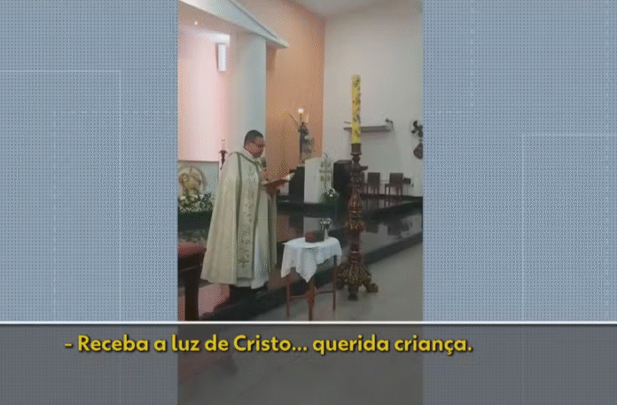 Nas imagens, registradas por uma tia da criança, é possível ouvir familiares pedindo que o padre fale o nome da menina. Ele, no entanto, insiste em se referir a ela apenas como “a criança” ou “a filha de vocês”.