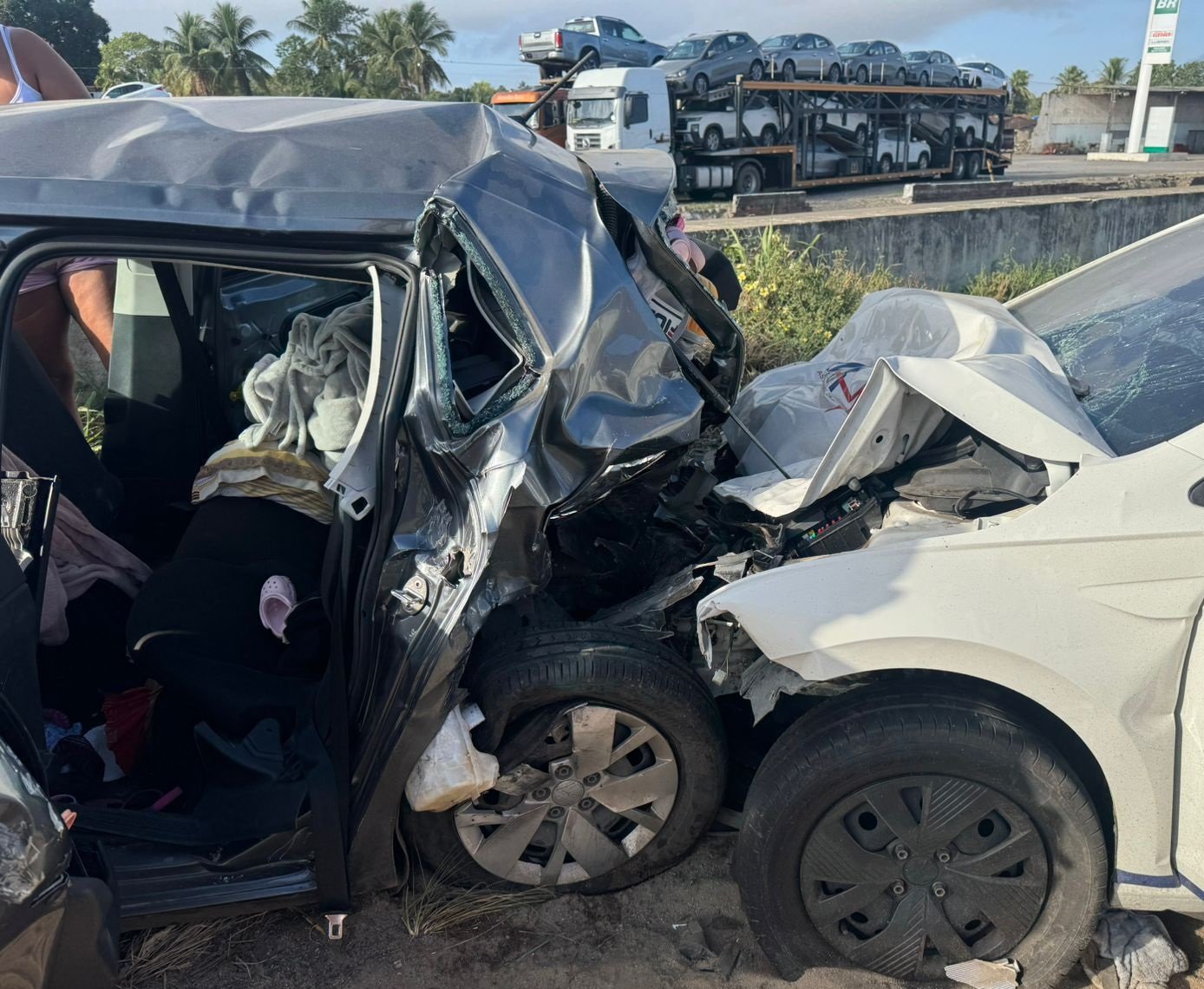 O impacto da batida destruiu o carro da família — que teve perda total — e deixou marcas profundas nos ocupantes. Além das costelas quebradas de sua esposa e de uma luxação de fêmur em seu filho menor de idade, o motorista confirma que a situação de Andreia, outra familiar que estava no carro, é a mais crítica no momento.