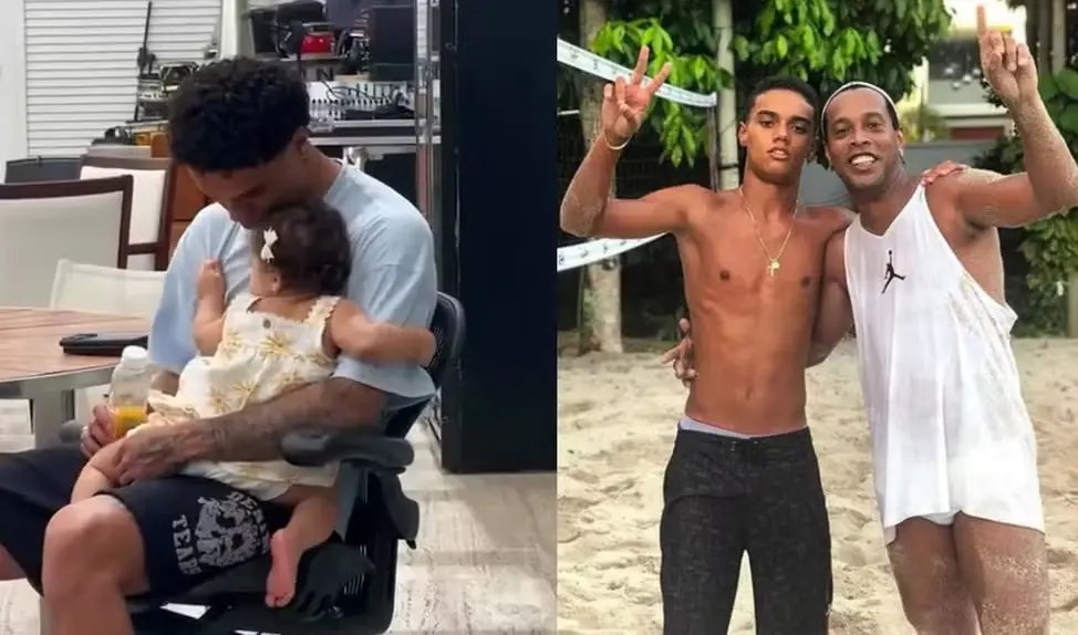 Pelo menos foi isso que ele demonstrou em um vídeo foférrimo que fez neste sábado (18), e postou em suas redes sociais. Nele, Ronaldinho registrou o filho, João Mendes, cuidando da filha dele, Teresa, com a influencer Giovanna Buscacio.