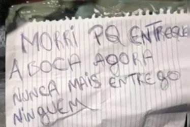 Criminosos deixaram bilhete junto ao corpo da vítima. Reprodução